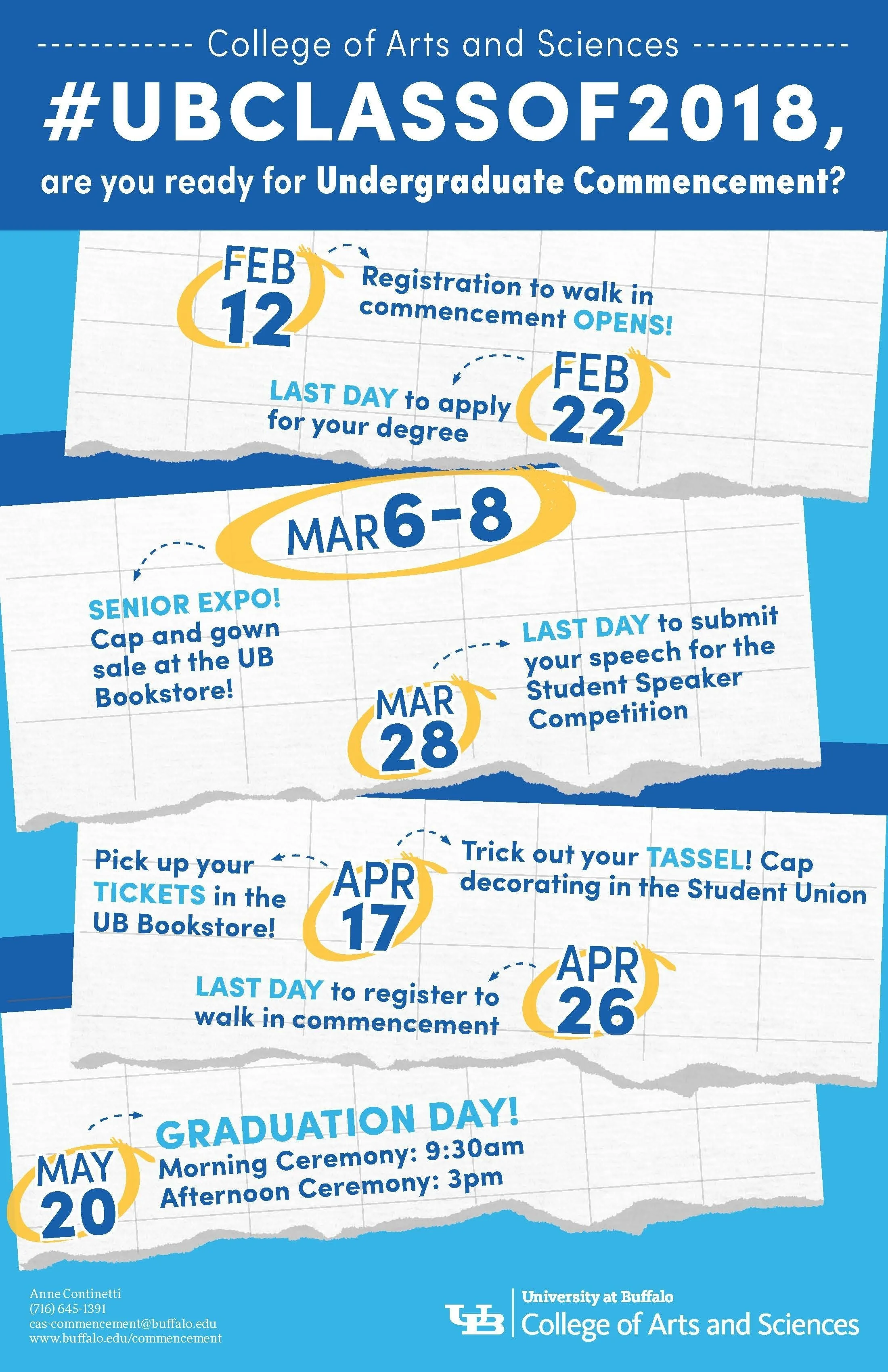 While working for the University at Buffalo’s College of Arts and Science, I was tasked to design a flyer highlighting the most important dates for upcoming graduates. Utilizing the brand guide for the university, I designed this bold calendar-like promotion so graduates knew which dates to look out for.